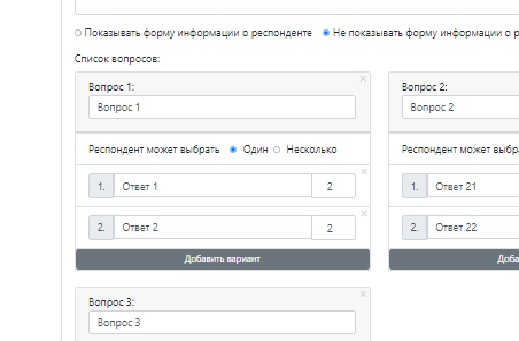 В простом конструкторе создаётся опрос в виде списка вопросов и вариантов ответов на них.